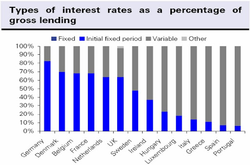 am noting that Italy is the fourth from last place as the number of fixed-rate mortgages in Europe. Together we have Greece, Spain and Portugal. First thought: are all countries of Southern Europe. There may be some correlation in this data?